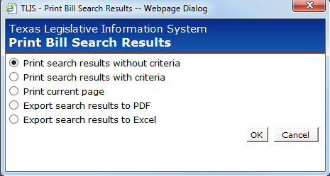 NOTE: All criteria from the previous search, except the Legislature, will be cleared.